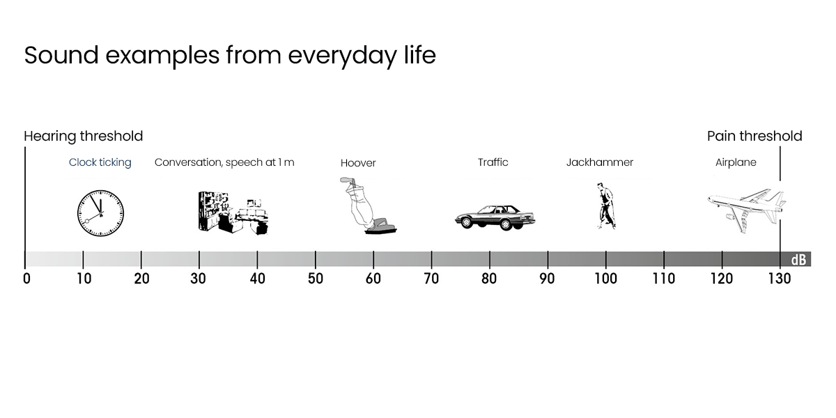 Sound pressure level is measured in decibels (db) and is an important measurement that indicates the level or strength of a sound signal. The sound pressure level is often used to measure and evaluate the noise level or loudness of sound sources. As the sound pressure level is logarithmically scaled, an increase of 10 dB means a doubling of the perceived loudness. For example, a sound pressure level of 70 dB is twice as loud as a sound pressure level of 60 dB.