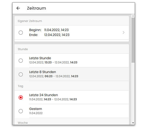 When defining the time period, you can choose a predefined time period as usual or define an individual range.