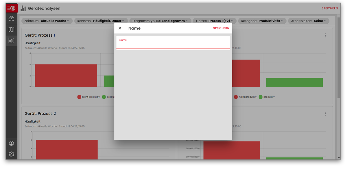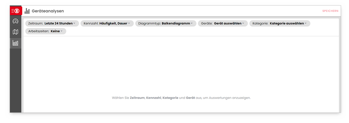 Once you have determined which devices are to be analyzed, you are now faced with selecting the category to be analyzed and the working times (working times are described in more detail in the article "Specifying working times for analyses"). A chart is created for each device and key figure.