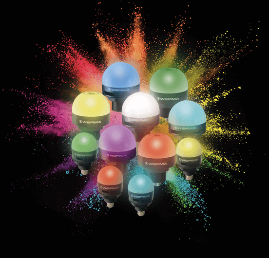 Mit den LED-Einbauleuchten Serie Multicolour MC55 und MC35 bietet WERMA kompaktes Signalgeräte mit bis zu sieben Farben in einer Leuchte: Rot, gelb, grün, weiß, blau, violett und türkis. Alternativ ist eine Tricolour-Variante erhältlich, welche die gängigste Farbkombination rot, gelb und grün in einem Signalgerät vereint. Zusätzliche Varianten mit Touch-Funktion zum Quittieren oder zum individuellen Konfigurieren verfügbar.