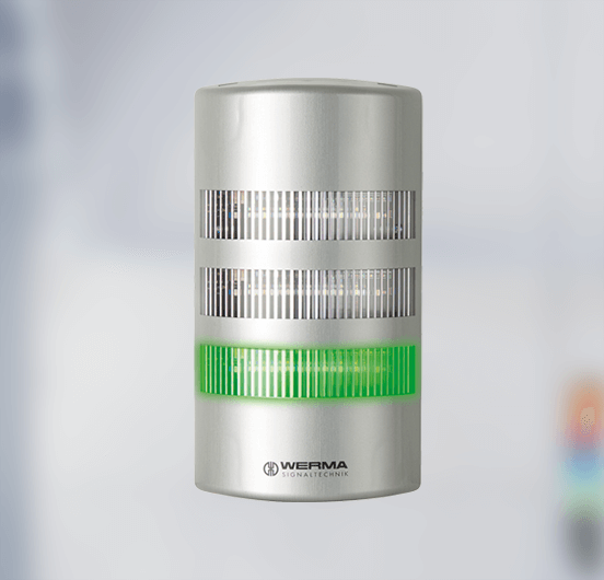 Der Abstrahlwinkel von 160 Grad sorgt bei integrierter Montageweise für beste Sichtbarkeit von der Seite und fügt sich homogen in das Maschinen- und Gebäudedesign ein.