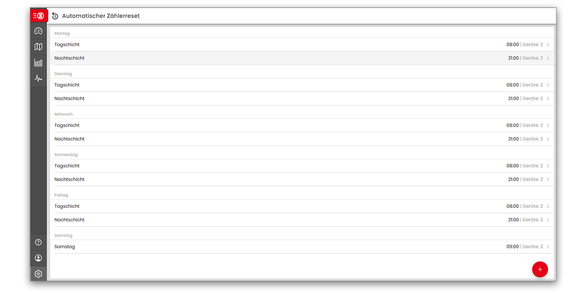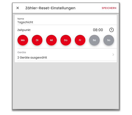 Neben dem manuellen Reset der Zählstufen, steht Ihnen auch eine automatische Resetfunktionalität zur Verfügung. Diese Funktionalität ist zeitgesteuert und ermöglicht Ihnen alle Zähler zu einem gewünschten Zeitpunkt zurückzusetzen. Dies kann beispielsweise der Beginn einer Schicht sein.