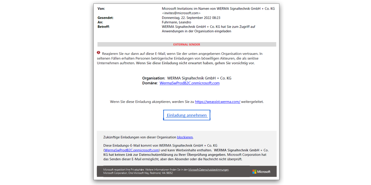 Klicken Sie auf Einladung annehmen, um zur WeASSIST-Anmeldeseite zu gelangen.