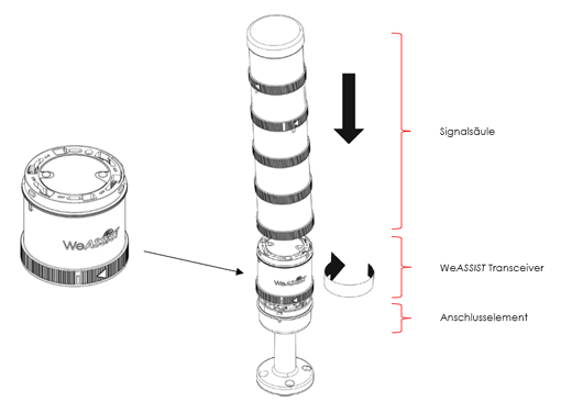 Als Signalsäule übermittelt der WeASSIST-Transceiver ausschließlich den Status der Signalsäule oder ermöglicht die Erfassung von Stückzahlen.