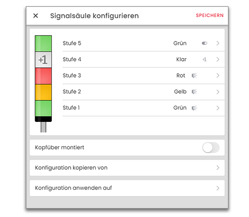 Um bei der Konfiguration mehrere Säulen Zeit zu sparen, können Sie eine Musterkonfiguration vornehmen und diese mithilfe der Konfiguration übertragen Funktion auf andere Säulen.Es besteht auch die Möglichkeit eine Konfiguration einer anderen Säule auf die ausgewählte Säule zu übertragen mithilfe der „Konfiguration kopieren von“ Funktion