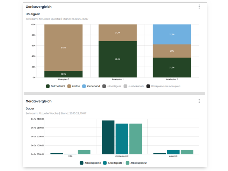 Das Multigeräte-Analyse Widget bietet Ihnen die Möglichkeit die Dauer oder die Häufigkeit bestimmter Merkmale einer Kategorie mehrerer Säulen auf einen Blick zu visualisieren.