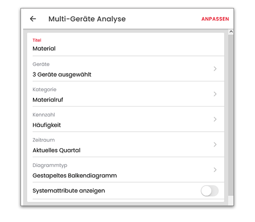 Analysen basieren in WeASSIST auf den von Ihnen angelegten Kategorien und Merkmalen. Mithilfe dieses Widgets können Sie Analysen mehrerer Geräte visualisieren.