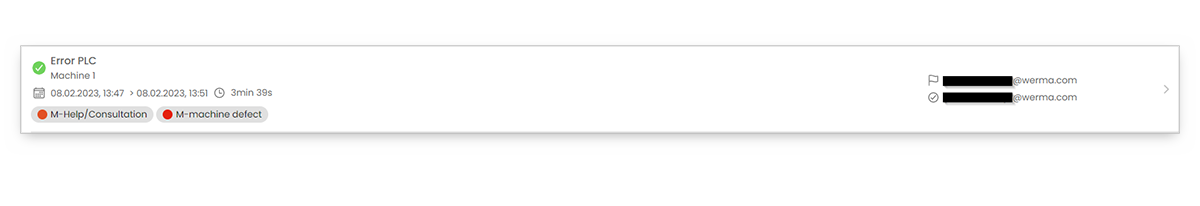 - Hinterlegter User: Hier sehen Sie, von wem der Vorfall geöffnet (Flagge) und geschlossen (Haken) wurde.