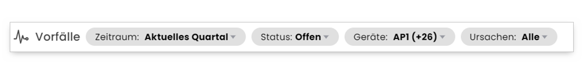 - Zeitraum: Filter auf einen Zeitraum um nur die Vorfälle zu sehen die im gewünschten Betrachtungszeitraum anlagen.