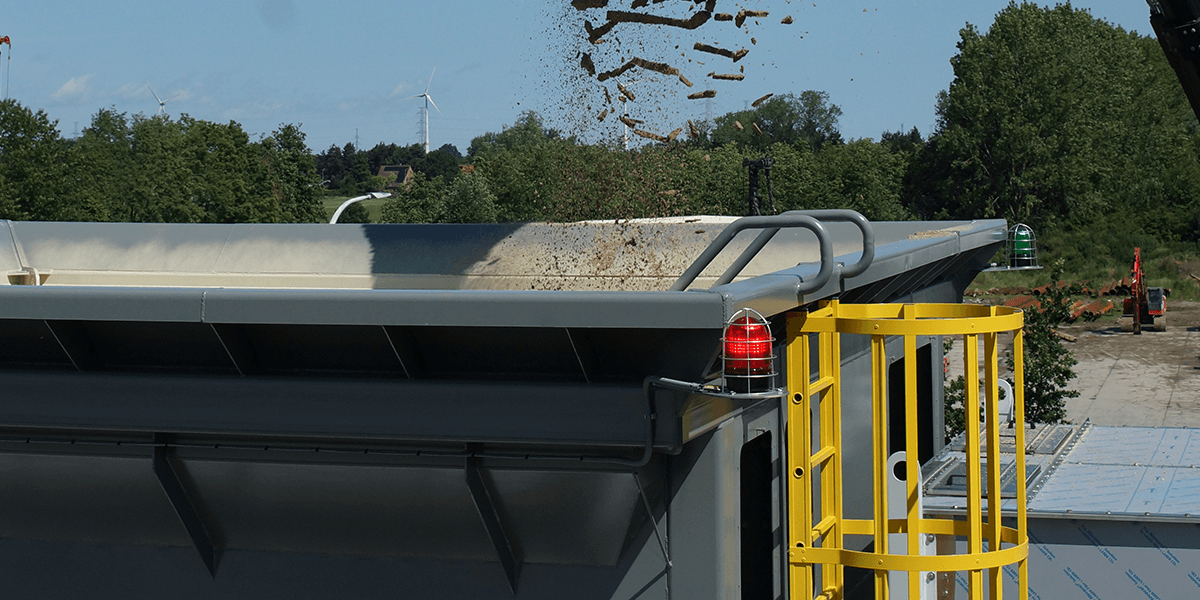 Sicherheitswarnung: Meyland nutzt WERMA Signalleuchten und Sirenen, um Personen im Nahbereich ihrer großen Wiegetrichter vor Gefahren zu warnen.