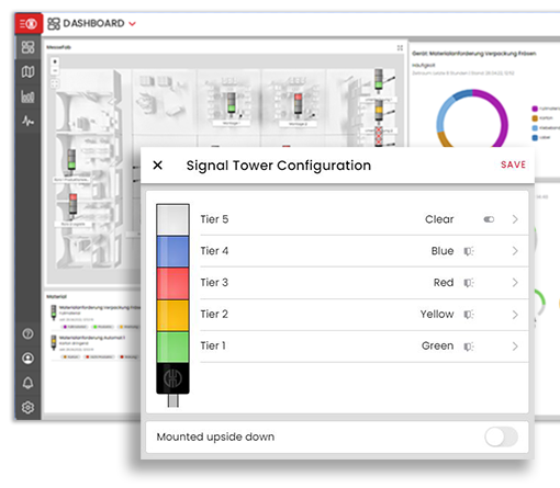 The cloud-based software displays the status of machines and workplaces on individual dashboards – easily selectable on a no-code platform. Your production data and analyses can be accessed from any device.
