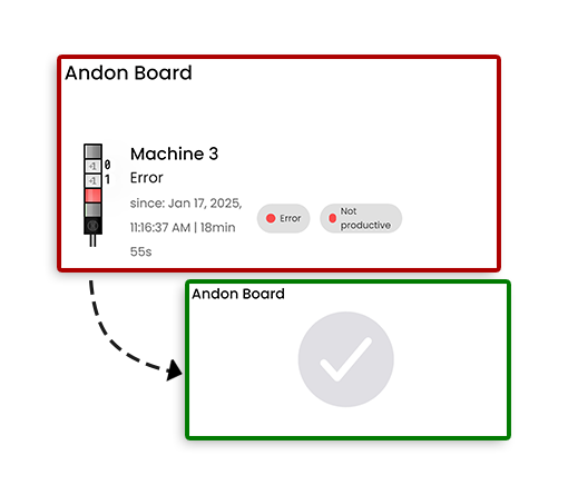 An Andon board is used to visually display the current status of production processes and to provide immediate feedback in the event of problems or malfunctions. It acts as a real-time information system that helps production workers, managers and technicians to react quickly to critical situations.
